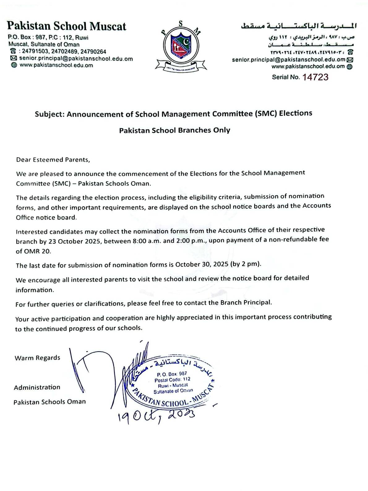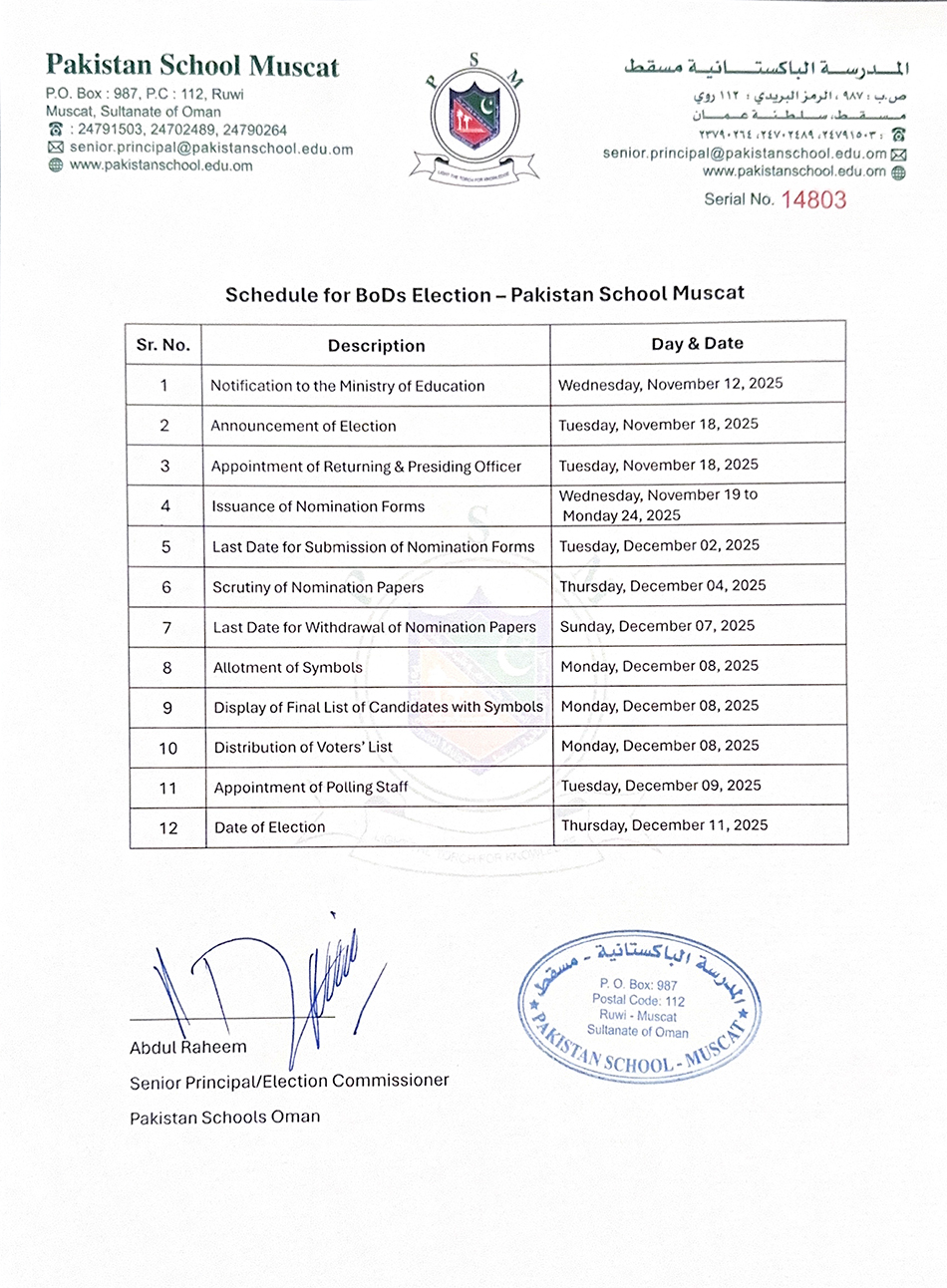 PAKISTAN SCHOOL MUSCAT