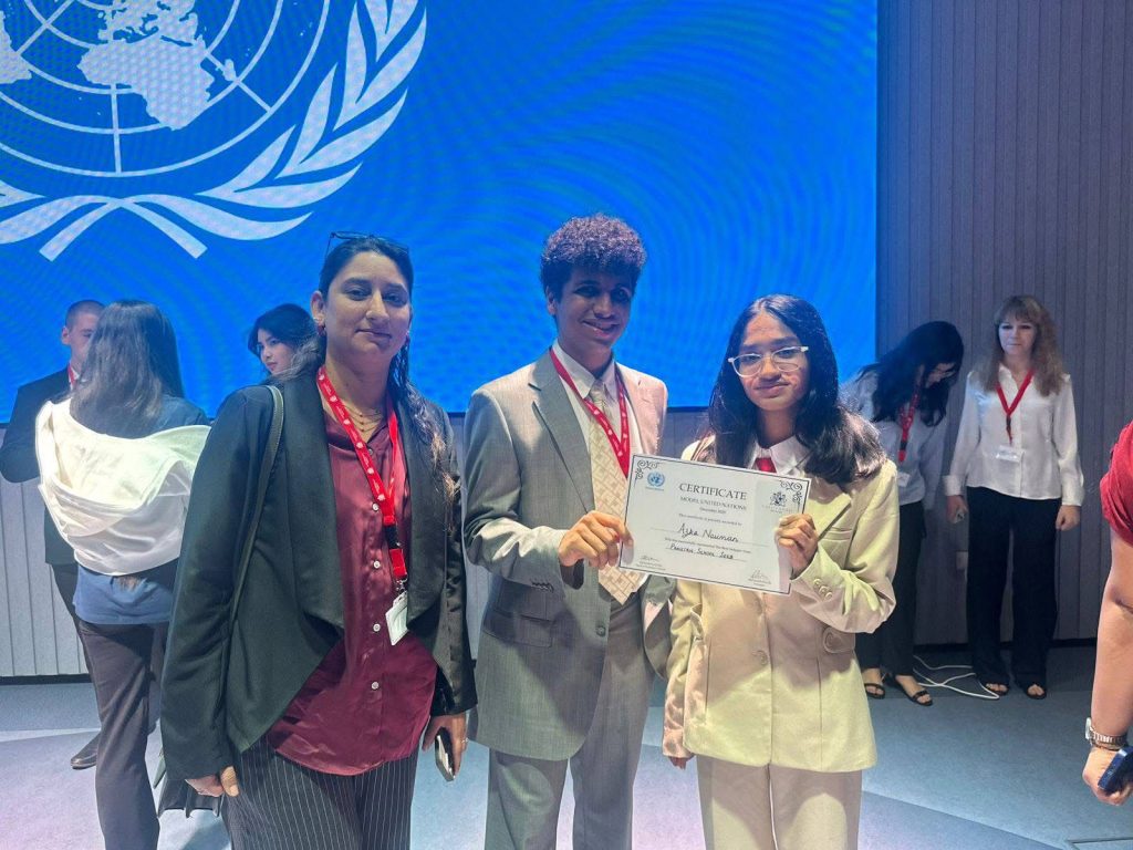 At Cheltenham’s inaugural MUN Conference, Anaya Shahid was awarded Best Delegate in the ECOFIN Committee, while Azka Nauman of Pakistan School Seeb also secured the Best Delegate Award, showcasing exceptional diplomacy, analytical insight, and outstanding performance.